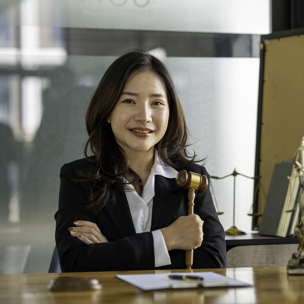 Abogada sonriente en estudio jurídico